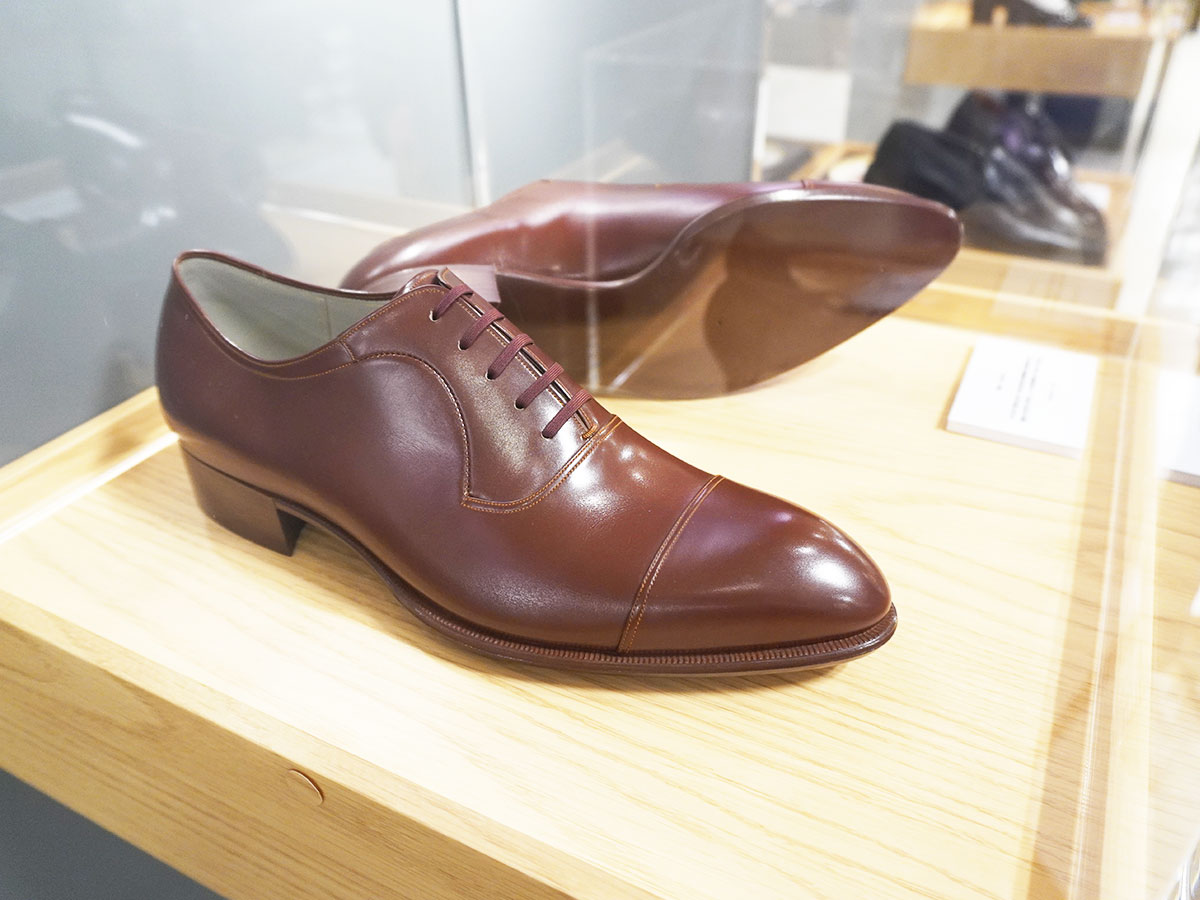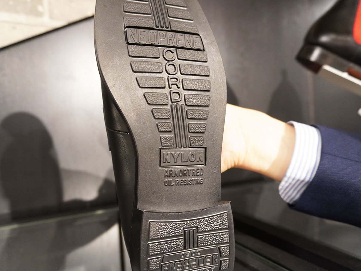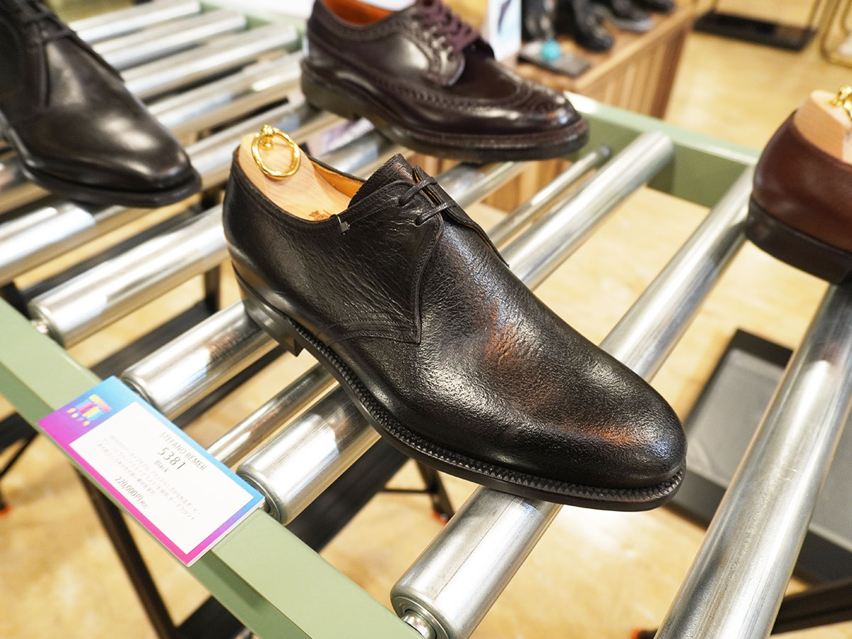植物タンニン鞣しの革が特徴なので、履き込むことで革の味わいを増すというところを重視して作られています。(上の写真中央の靴も履き込んだシワがいい感じでした)