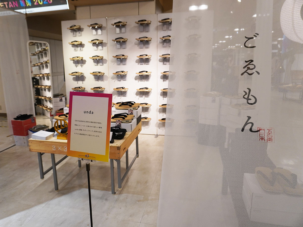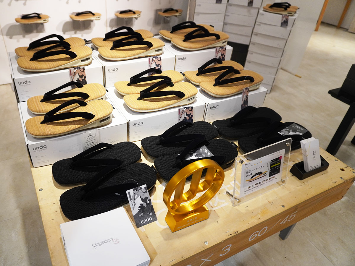 日本の伝統的な履物・雪駄(せった)と、スニーカーのような底材を掛け合わせたブランド unda です。