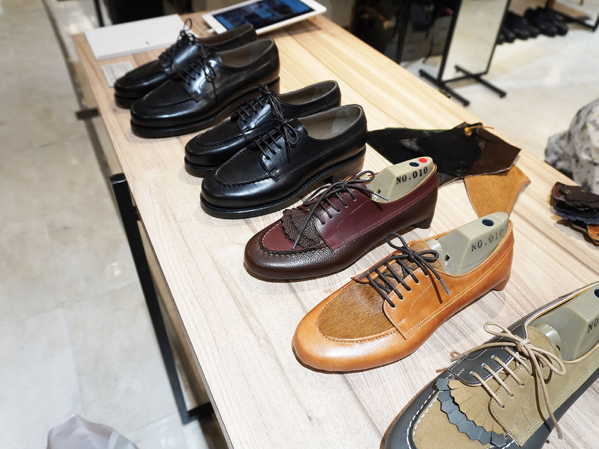 シューズデザイナー坪内浩氏、ファッションディレクター干場義雅氏の展開するブランドWH(ダブルエイチ)を軸にし、他店との協業で生まれる靴博限定モデルです。