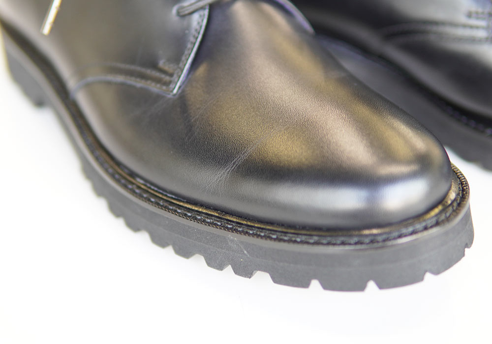 通常革靴は片足で500g程度ありますが、こちらはボリューミーな見た目とは裏腹に330g前後と圧倒的な軽さです。(スニーカーは300〜400g程度)
