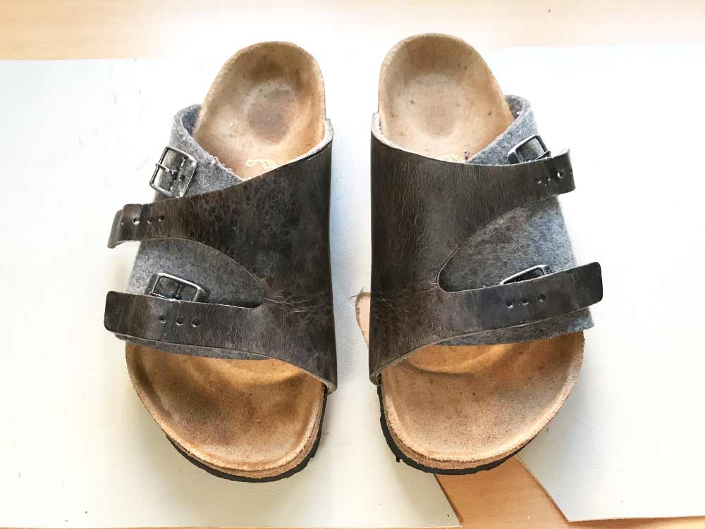 こちらのサンダル、革とフェルトでできてます。