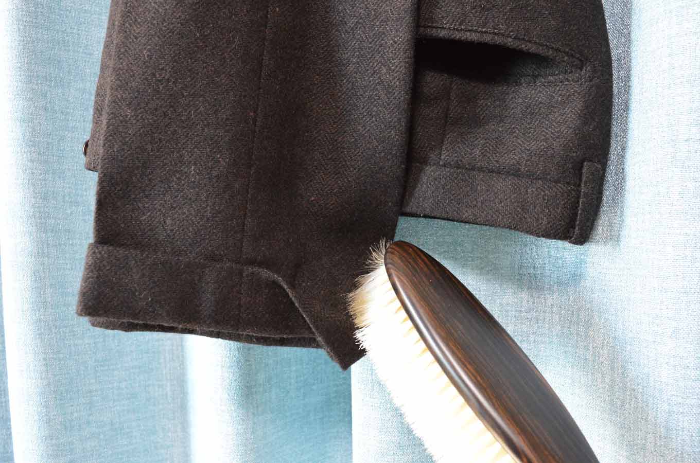 ③ラペルの裏やダブルの裾の隙間なども、忘れずブラッシングしましょう!