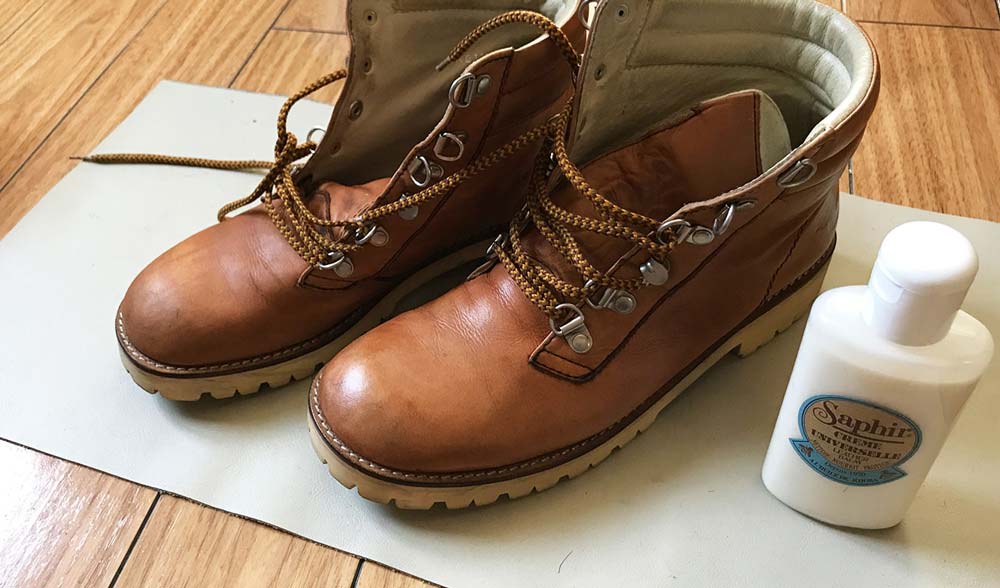 なので、栄養補給もしつつ、汚れも落とせる Saphir のユニバーサルレザーローションを使います。